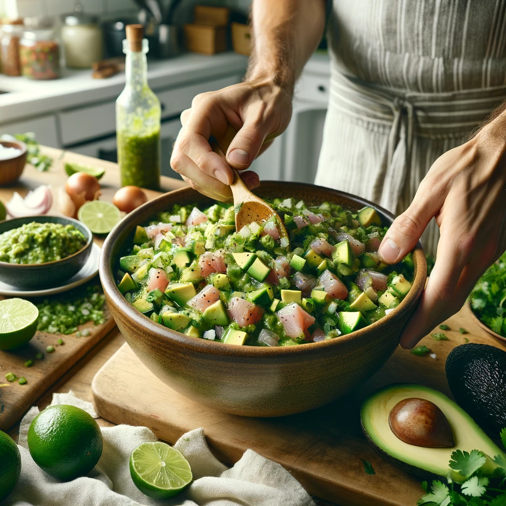 - Combine and Season: Drain off most of the lime juice from the fish. Add the fish to the salsa mixture and gently mix, being careful not to break the fish pieces. Season with salt and pepper to taste.